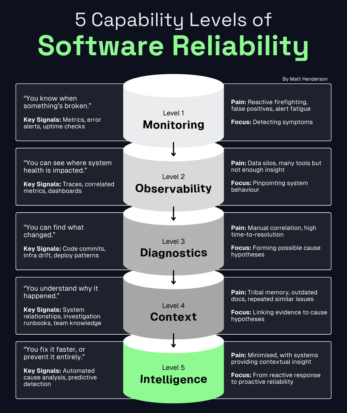 At Level 5, the goal isn’t just to reduce MTTR, it’s to dramatically reduce the number of incidents that reach production in the first place.